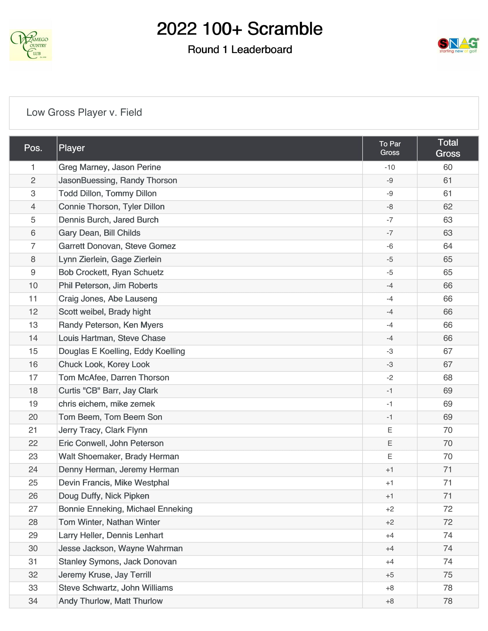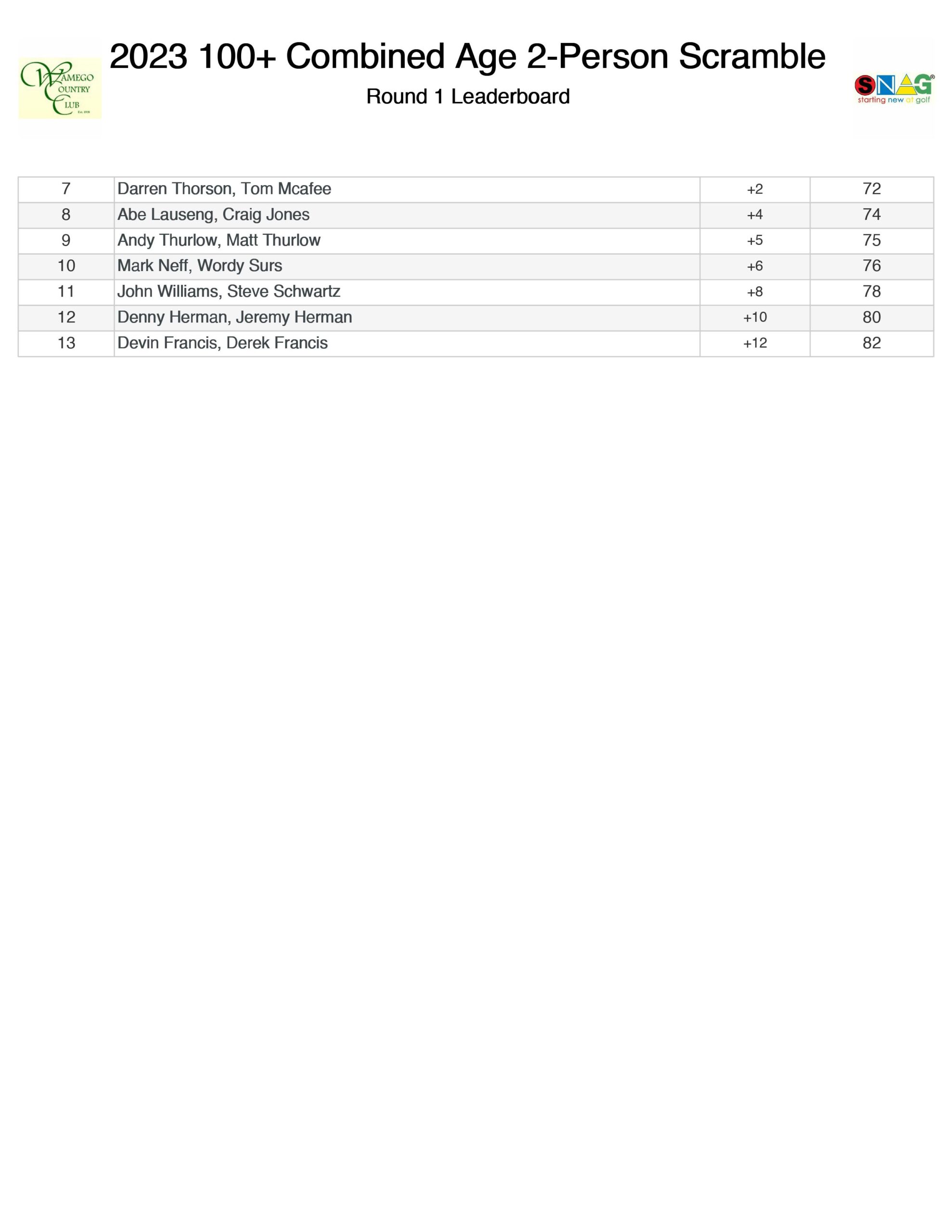 - WCC 100+ 2 Person Scramble