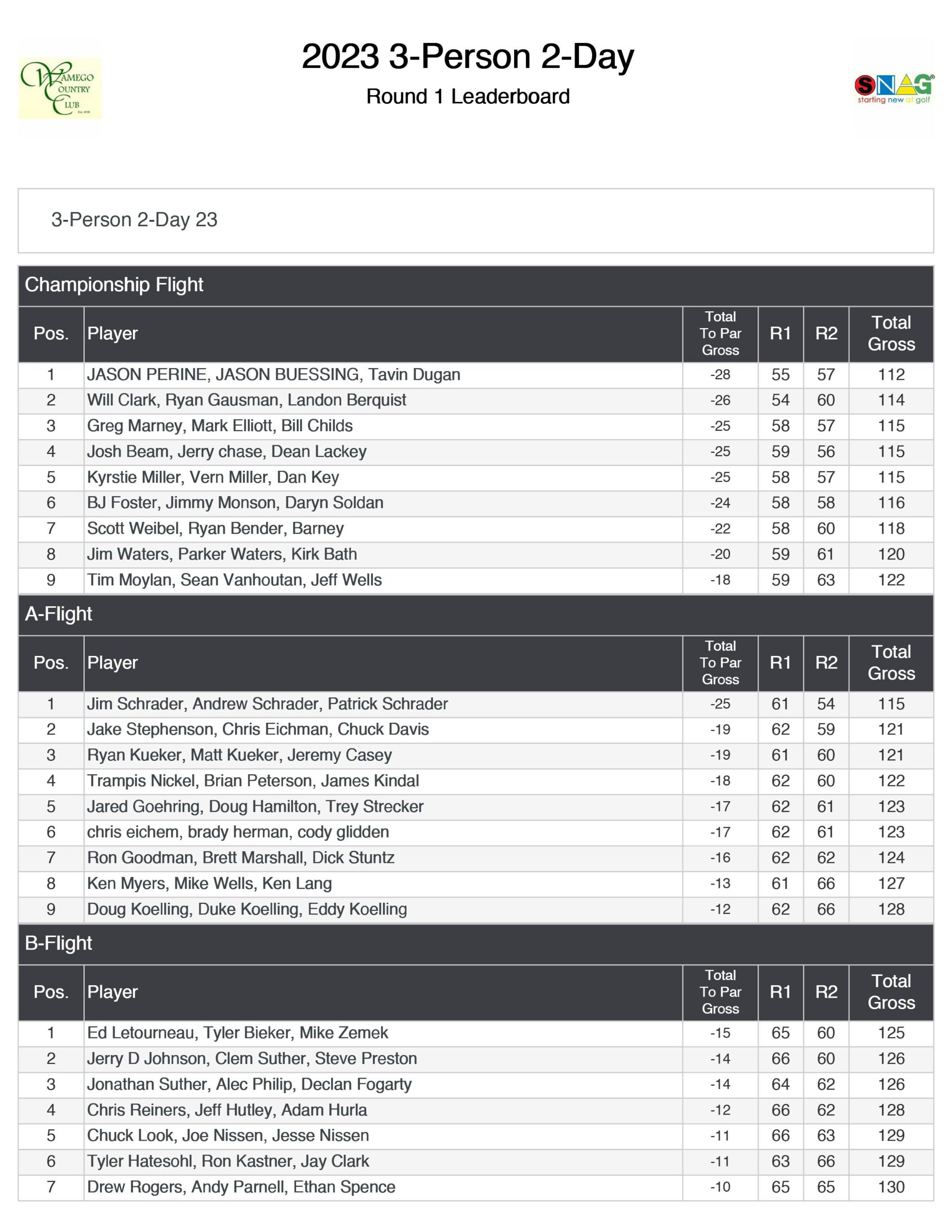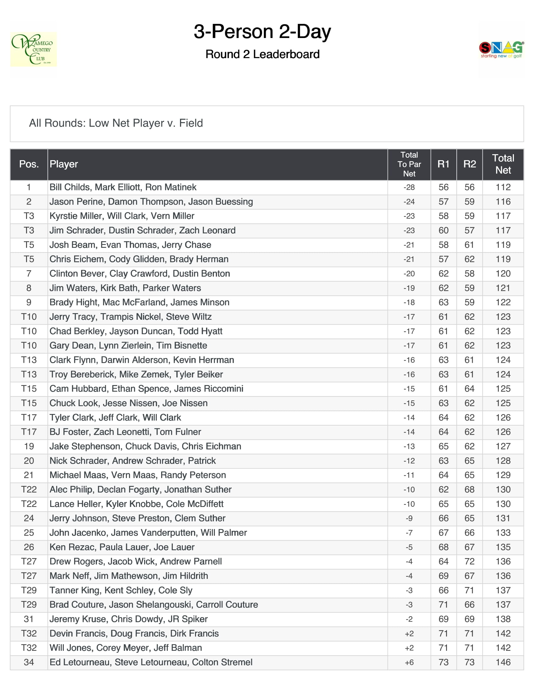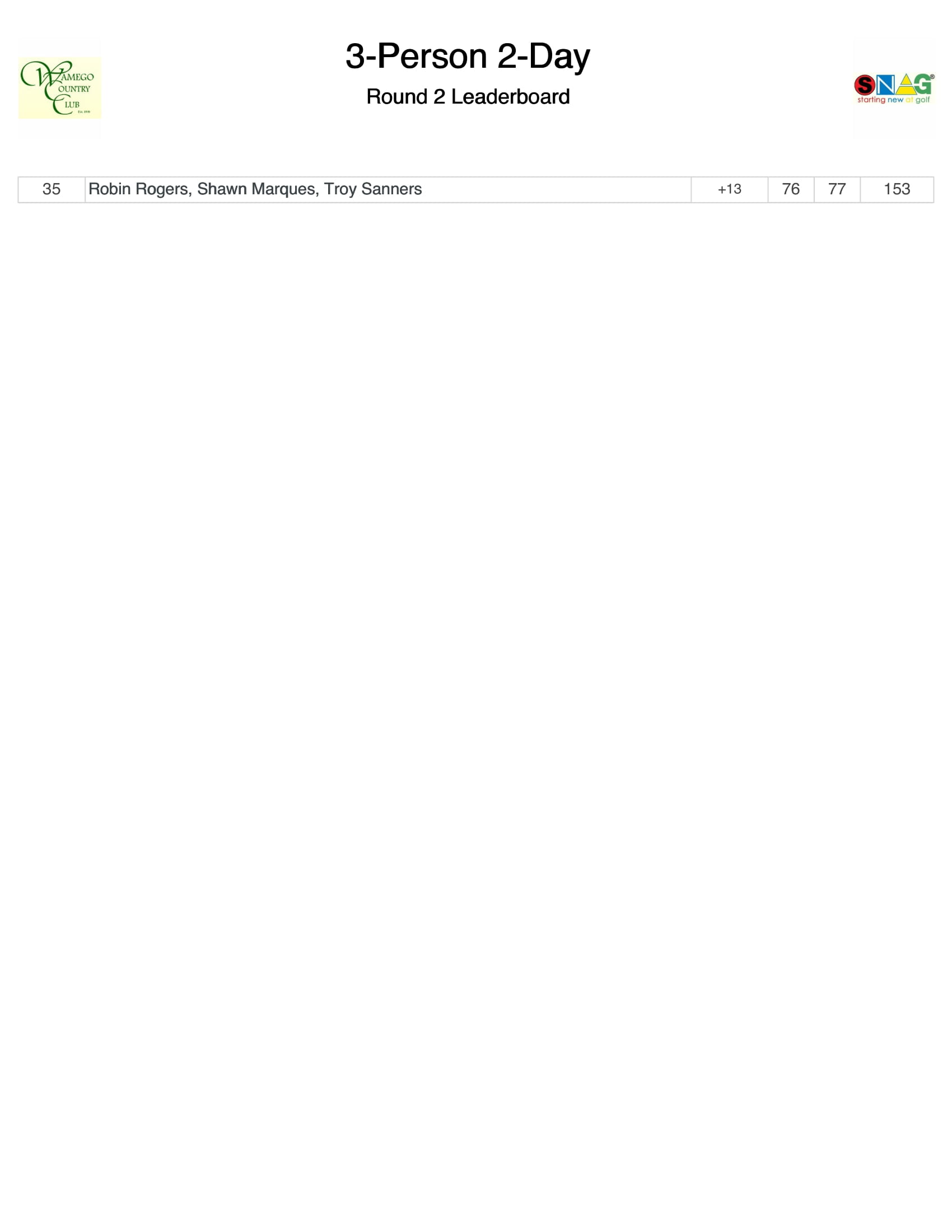 - WCC 3-Person/2-Day Tournament