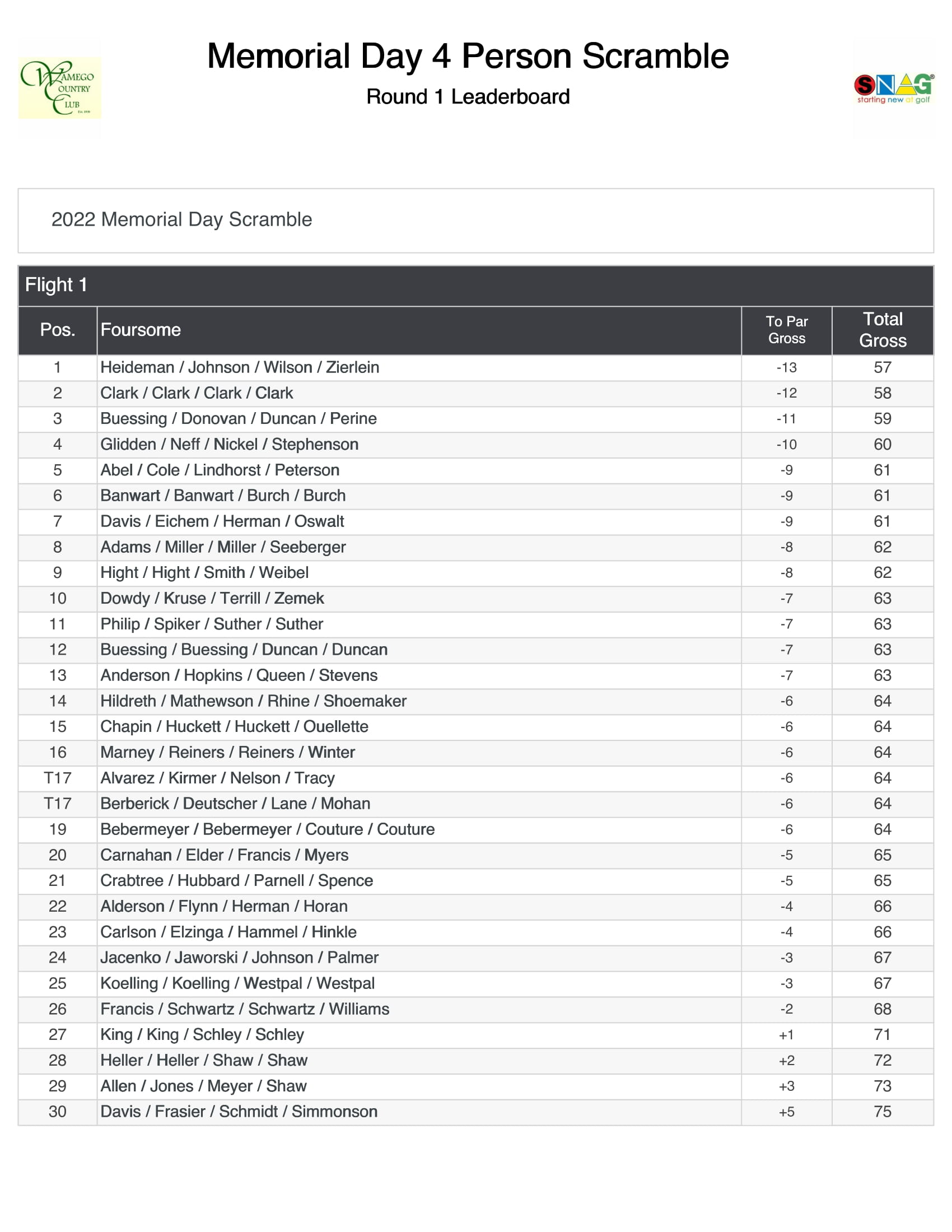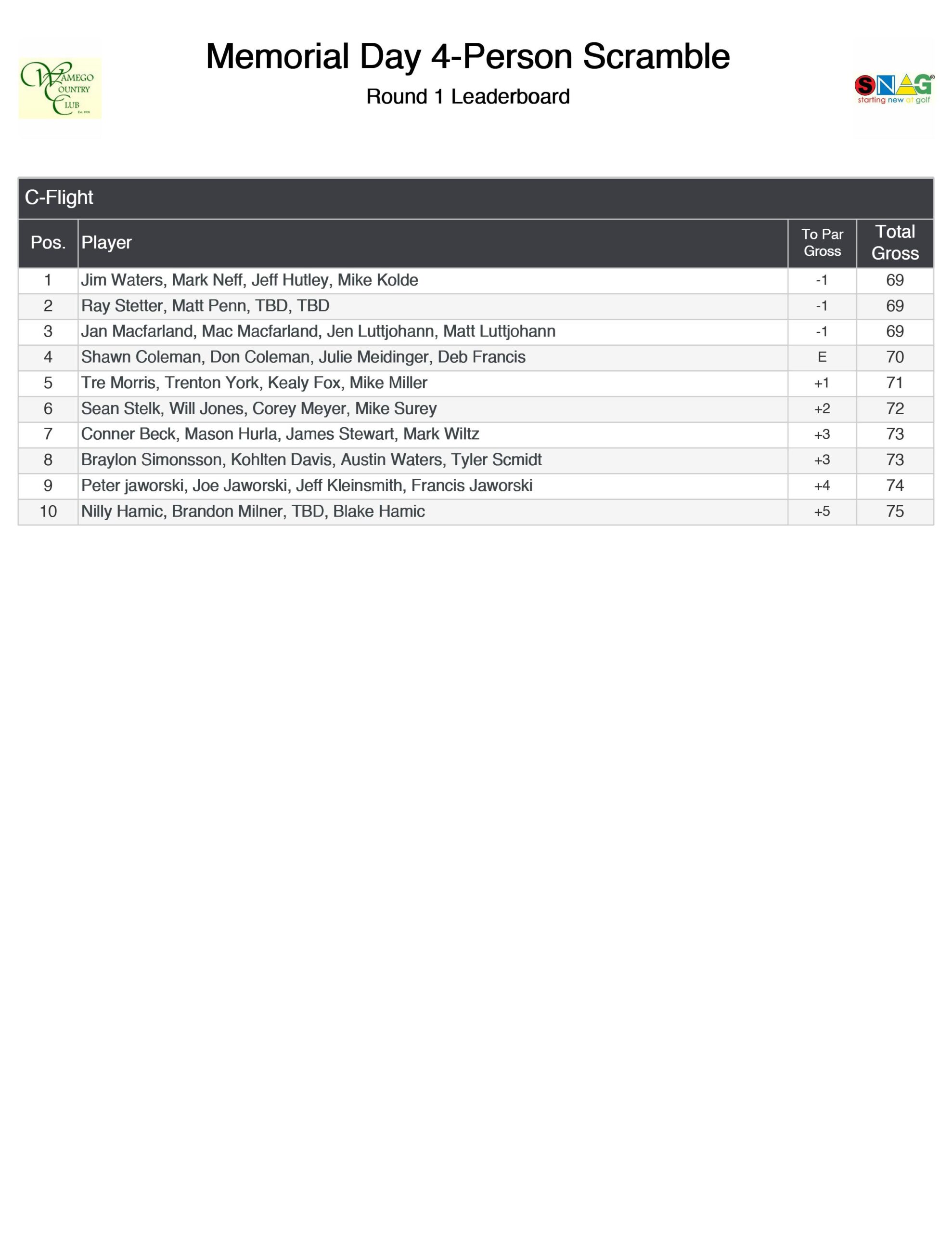 - Memorial Day Scramble