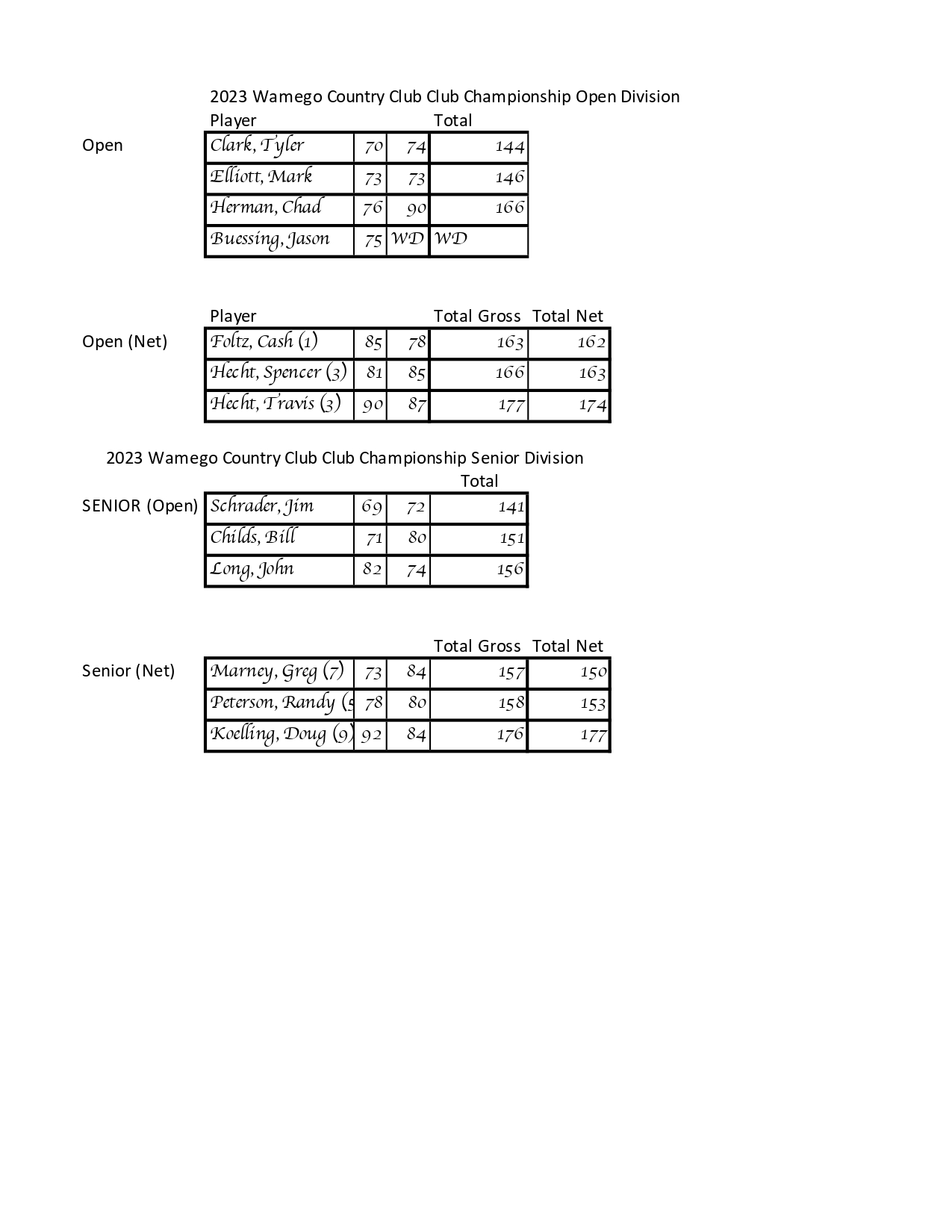 - WCC Parent/Child Scramble